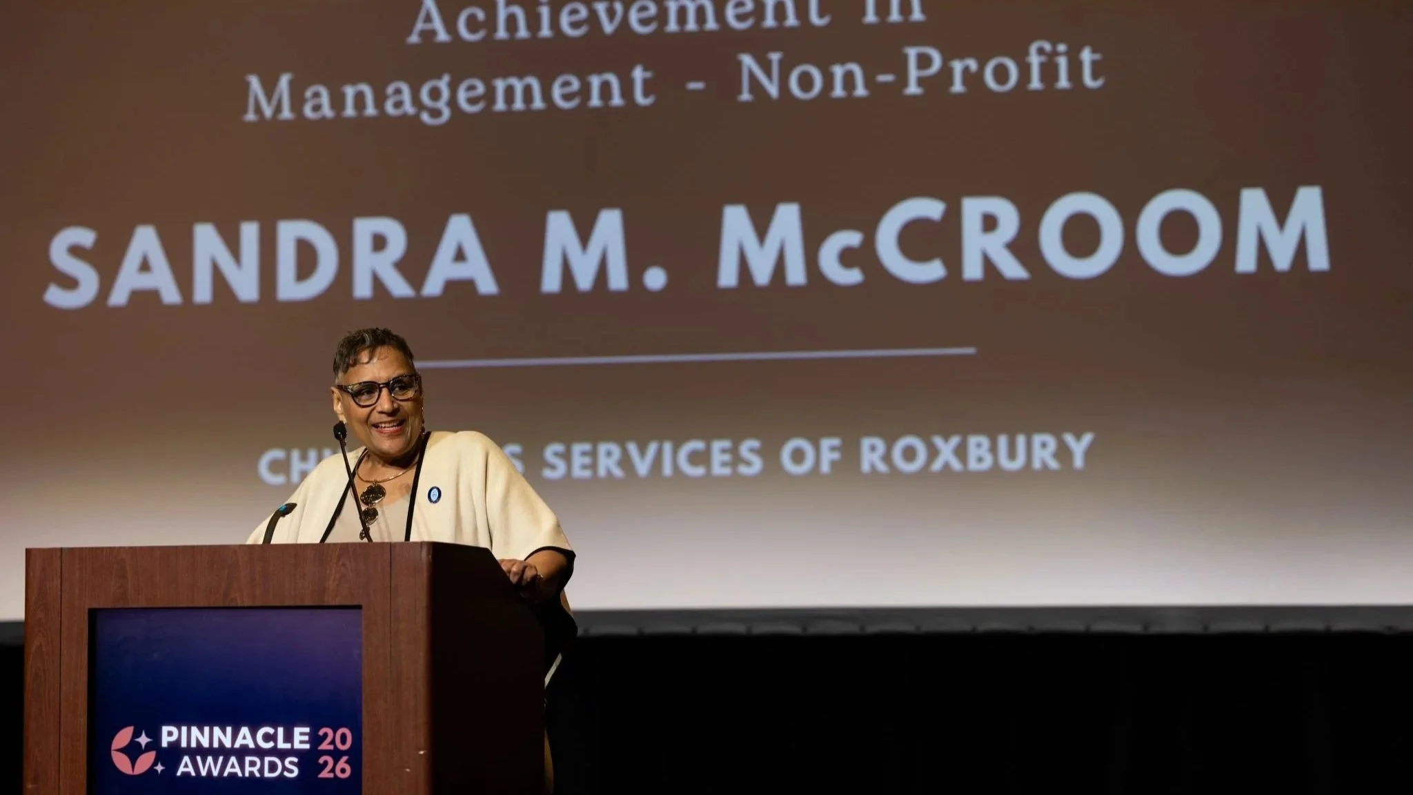 Congratulations to Sandra M. McCroom, President & CEO of Children's Services of Roxbury, Inc. for receiving the 2026 Achievement in Management - Non Profit award at this year’s Greater Boston Chamber of Commerce Pinnacle Awards. The Lynch Foundation remains a proud partner of Sandra and Children's Services of Roxbury, Inc. work to support children, young adults, and families across our state. Congratulations, Sandra, for this deeply deserving award!